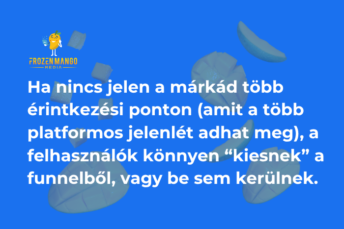 A modern hirdetéskezelés több platform összehangolt működésére épül. Ha nincs jelen a márkád több érintkezési ponton (amit a több platformos jelenlét adhat meg), a felhasználók könnyen “kiesnek” a funnelből, vagy be sem kerülnek.